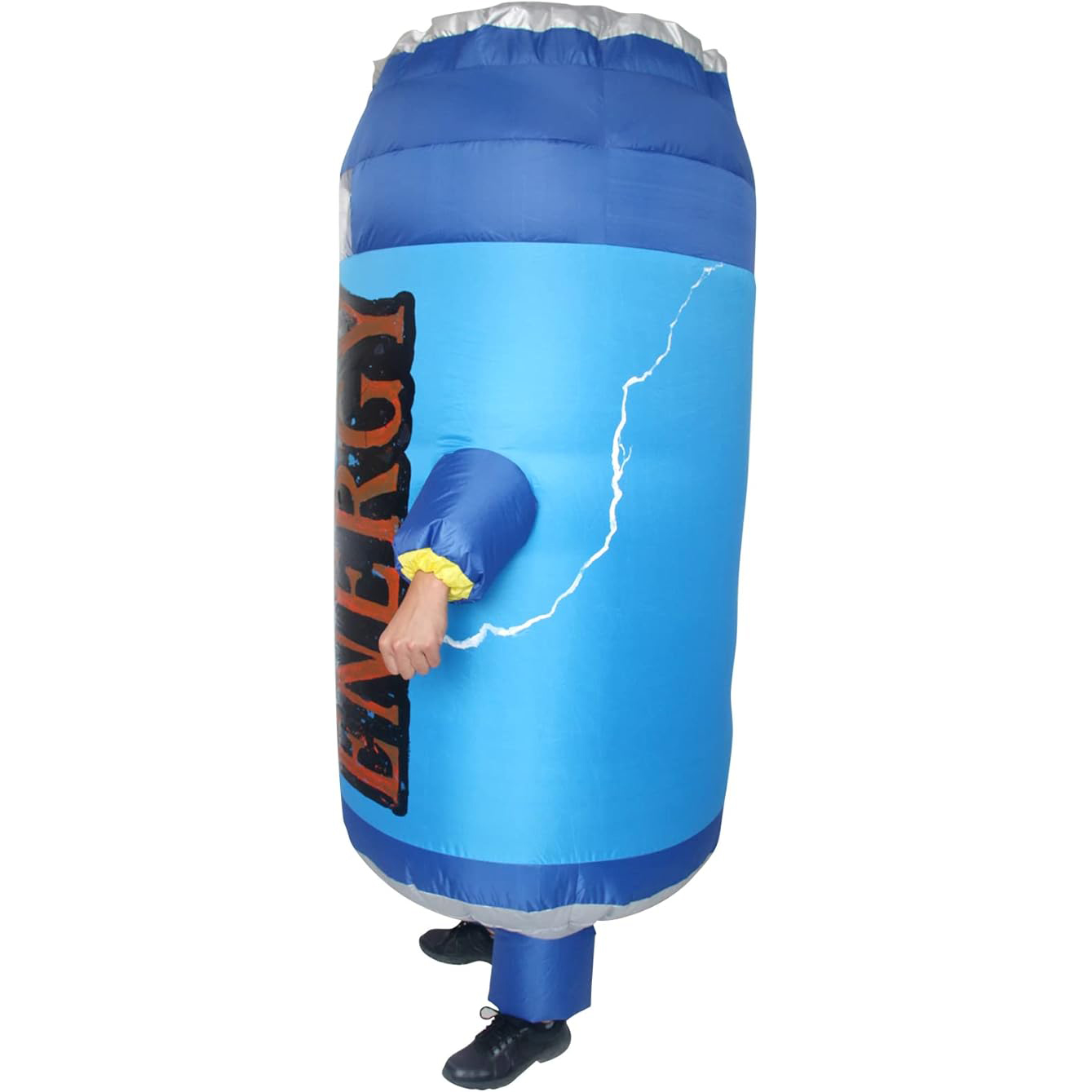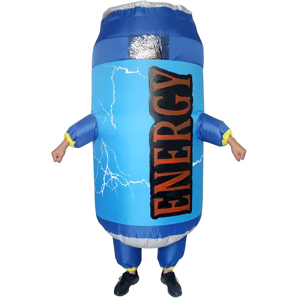 About this item [Material and Size]: inflatable soda water costume made of 100% polyester fiber, waterproof and breathable. It can touch your skin. healthy and comfortable. You will have a clear view when you are inside the inflatable suit. The inflatable costume size design suitable for (150cm-190cm) height, unlimited weight and waist circumference. Product size is suitable for most adults and teens [Package Include]: 1 x inflatable costume, 1 x Requires 4 x AA Batteries box(Battery not included), 1 x Battery/USB operated fan [Easy to move and dance ]: When you wear the costume you can see everything around you very clearly, don't worry that you can't see. You can play game with your friend and it won't affect your activities. you can do more! [Occasion]:Big hit in the crowds! Dancing with music ,walking with your pets, shopping with your friends when you wear the inflatable costume .The inflatable costumes is perfect for gifts, Costume party, Carnival, Easter, Christmas, New Year's Eve, Halloween, Cosplay, Birthday party, Holiday travel, Shopping, Pool party,The Bachelor Party, Fancy dress ball. [Easy Wear and Collapsible]: You need to get into the inflatable suit, zip it up or drawstring it, let the fan inflate for miniutes and then you're ready to move. And it can be collapsible when you take off. you can put it in your bag when not wearing to save space.( Don't put the battery box or the power bank in your own pocket. Please put it in the special pocket of the inflatable suit to avoid overheating) Thanks for you understanding!