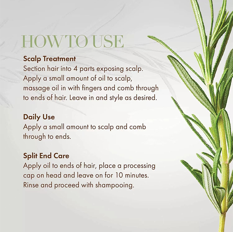 多用途护发精油: 我们的迷迭香护发精油用途广泛,易于使用,可满足您的所有护发需求。无论您是想促进头发生长、睫毛生长,还是想滋养头发和干燥的头皮,我们的发油都能满足您的需求。