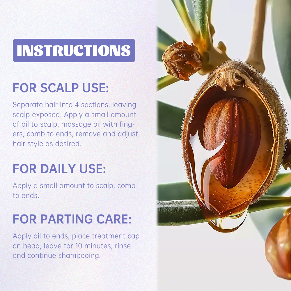 含有多种天然植物油成分,温和滋养:摩洛哥坚果油:被誉为“液体黄金”,富含维生素E和不饱和脂肪酸,能够深层滋养秀发,增强发丝弹性,修复受损发质,同时提供防晒、润肤、紧肤和抗衰老的功效。