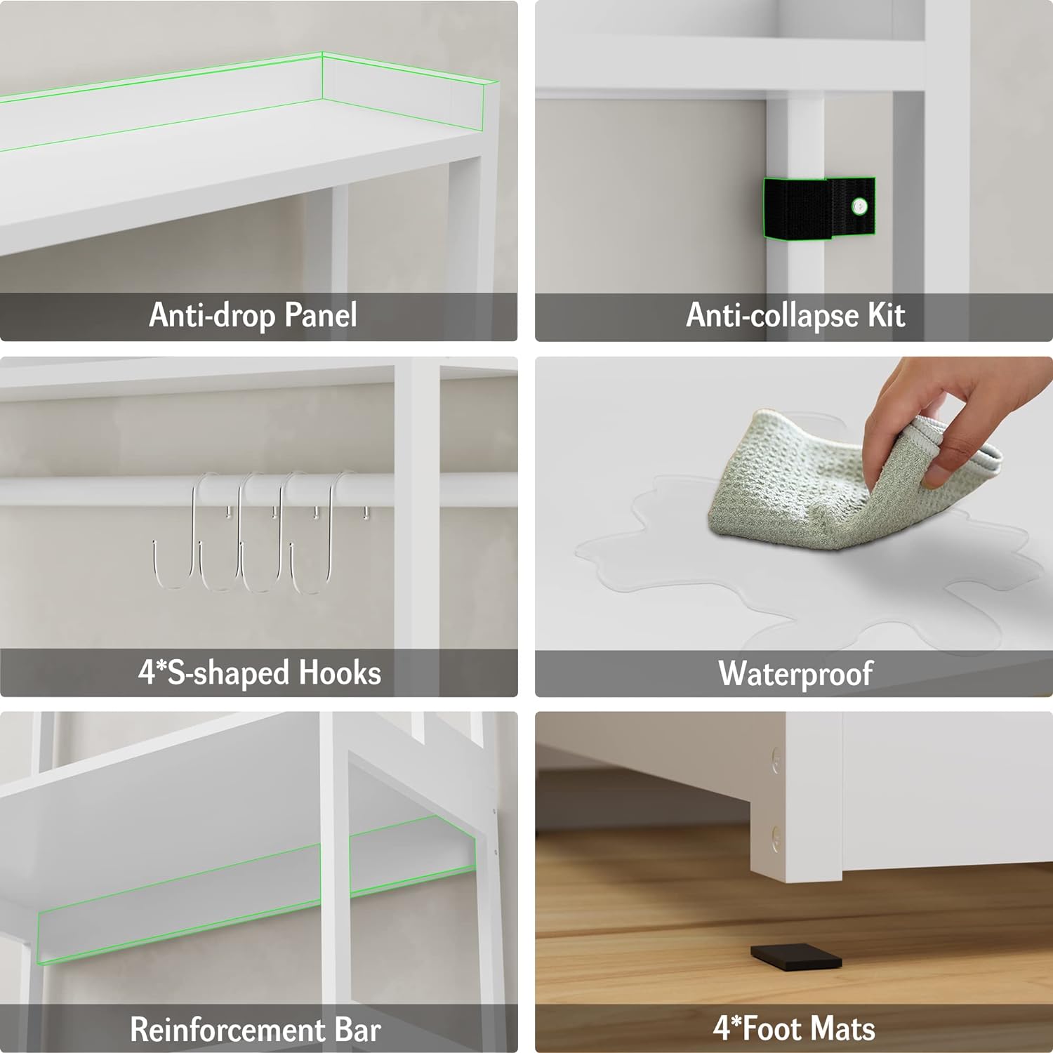 【多功能面包架】这款竹制面包架非常适合存放厨房用具、炊具和其他必需品。宽敞的架子提供充足的存储空间,4 个挂钩可用于悬挂马克杯、毛巾和其他厨房配件。该架子还可以用作家中任何房间的植物架、书架或储物架。 【坚固耐用】这款厨房架由高密度竹子制成,坚固耐用。竹材料环保且可持续,使其成为具有环保意识的人的绝佳选择。光滑的表面使机架易于清洁和维护,确保其可持续使用多年。 【卓越的承重能力】面包架的每块板均由 3 层竹子制成,竹子交叉形成坚固耐用的结构。该架子还在底部 3 层木板下方设有支撑杆,提供卓越的承重能力。最大承重能力为 160 磅,您可以确信您的面包架能够轻松容纳您所有的厨房必需品。 【易于组装】该产品配备了所有必要的硬件和工具,组装过程可在 50 分钟内完成。该产品还配有防倾倒套件和脚垫,可提高稳定性并保护地板免受刮擦和损坏。凭借这些功能,您可以确保您的面包架即使在不平坦的地板上也能保持稳定和安全。 【节省空间的设计】这款面包架的紧凑尺寸使其成为小型厨房或公寓的绝佳选择。该架子可以放置在角落或靠墙放置,从而释放宝贵的柜台和橱柜空间。搁架的开放式设计还让您可以轻松取放厨房必需品,确保您可以快速找到所需物品。 【现代时尚】这款竹面包架的时尚现代设计将与任何厨房装饰相得益彰。现代白色赋予搁架简约的外观,而坚固的结构确保它将成为您家中功能性和时尚的补充。
