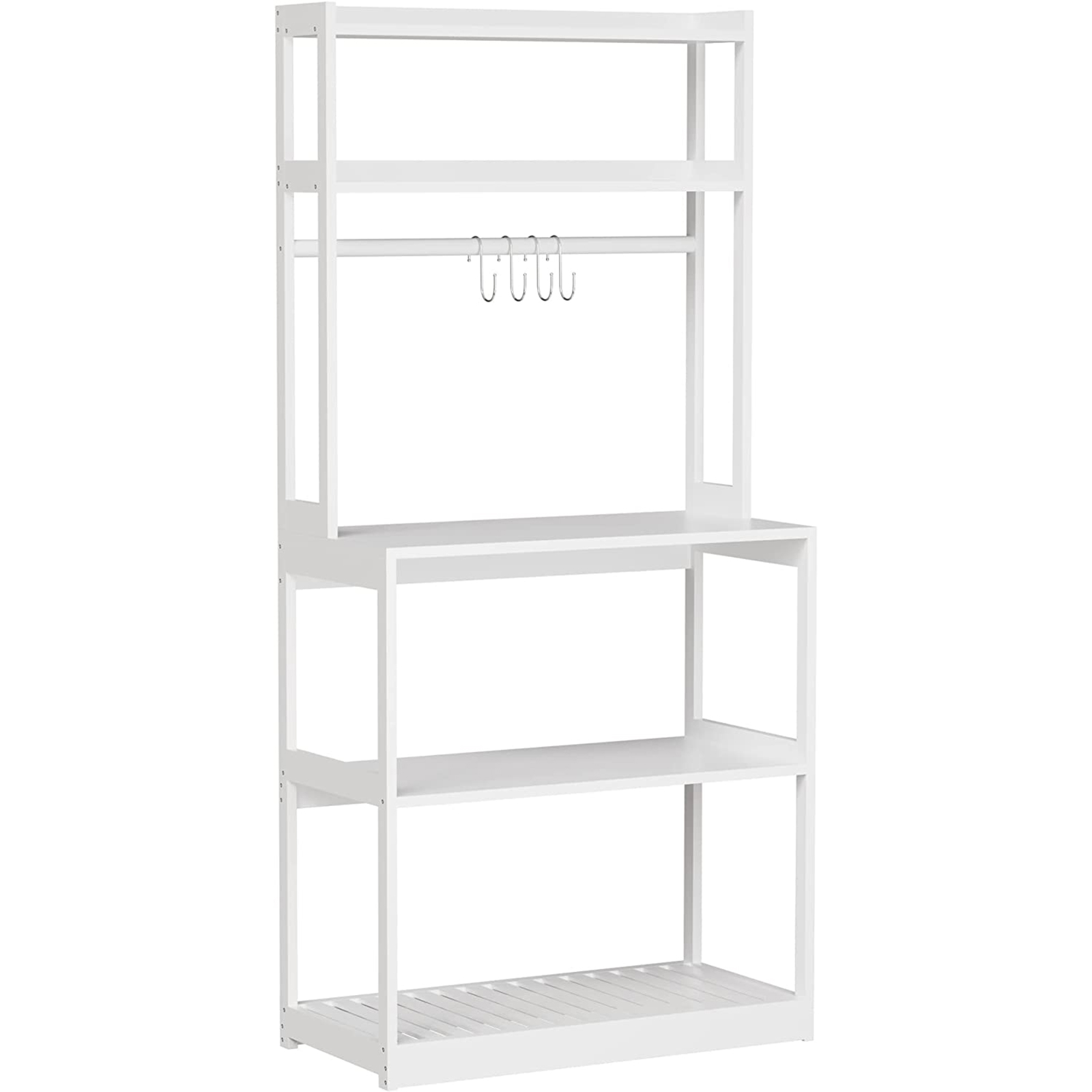 BZH 竹制微波炉架、带储物架的厨房烘焙架、带 4 个挂钩的 5 层厨房架、适用于厨房、客厅、走廊、阳台的重型搁架(亚马逊禁售)
