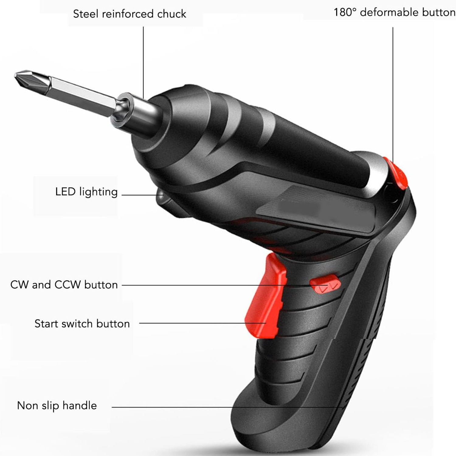 • SIMPLE OPERATION: This folding electric screwdriver features a one-key 180° rotation for effortless use. The simple button design allows for easy one-click start or stop, providing convenient and fast operation