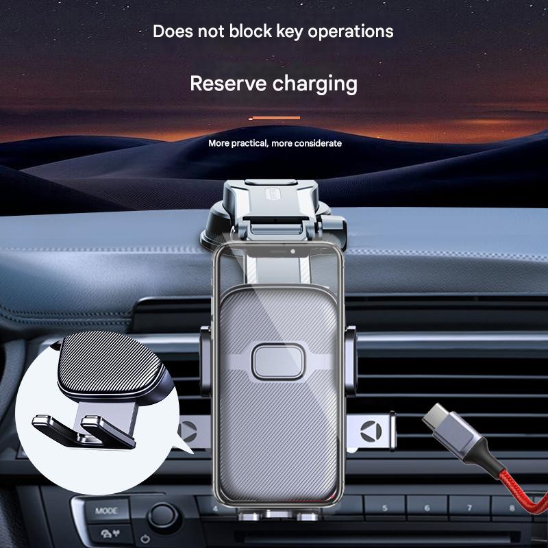 【实用功能】: 采用机械联动弹出式结构,只需轻轻按下手机,即可掀开面板联动按钮自动锁定,操作简单快捷,甚至可以单手拿起放下手机。消除了手机不慎掉落而堵塞刹车或油门的风险。