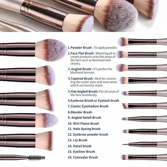 化妆刷推出 16 件装自立式合成粉底刷,含 3 块化妆海绵,这是 16 种专业级化妆刷的综合集合,旨在将您的化妆应用提升到一个新的水平。该套装还包括 3 个附赠化妆海绵,为您提供完美无瑕和抛光妆容所需的所有工具。